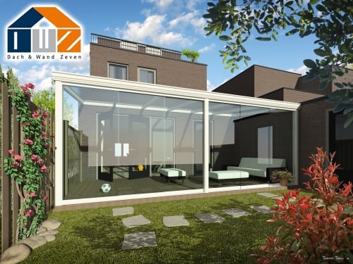 Wenn die Maße übereinstimmen, können Sie die Glasschiebetüren und Seitenkeile auch für andere Terrassenüberdachungen verwenden.